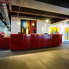 1. Close to nightlife and eateries for easy exploration. 2. Social common areas designed for mingling. 3. On-site bar with festive drinks.